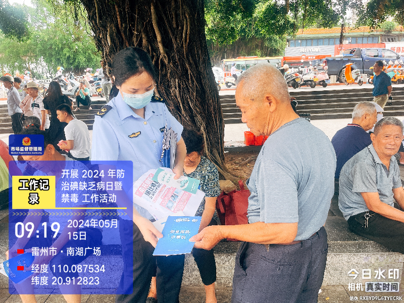 2024年5月15日是第31個“全國防治碘缺乏病日”,為進一步增強群眾健康意識,提升自我保健能力,雷州市衛(wèi)生健康局、雷州市疾控中心、雷州市市場監(jiān)督管理局、雷州市婦女聯(lián)合會、雷州市殘疾人聯(lián)合會、廣東省鹽業(yè)集團雷州鹽場有限公司等單位在雷州市南湖廣場開展以“食鹽加碘防疾病,平衡營養(yǎng)健康行”為主題開展宣傳活動,我局禁毒辦及藥品監(jiān)管股等股室以此為契機開展“合成毒品忽沾染,嚴禁青年濫用新型毒品,嚴控藥品濫用,保障用藥安全”、“2024年雷州市藥品安全與高質(zhì)量發(fā)展,全面提升藥品安全監(jiān)管能力建設”禁毒宣傳。