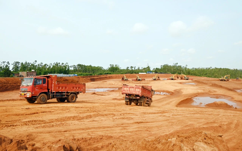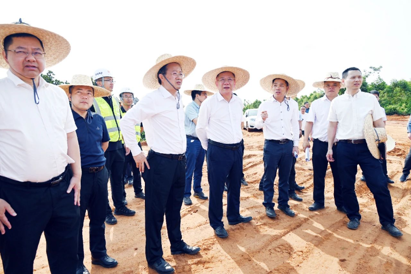 當日上午,吳松江一行抵達龍門鎮(zhèn)謝家村附近的項目建設現(xiàn)場,實地查看湛江雷州通航基地項目進展。施工現(xiàn)場一片繁忙景象,一側多臺大型挖掘機揮舞長臂緊張作業(yè),另一側10余輛運輸車滿載土方來回穿梭,場平工程正有序推進。吳松江認真聽取了土方工程和征地工作的情況匯報,詳細了解了項目建設過程中遇到的困難和問題,并針對性地提出了意見和建議。